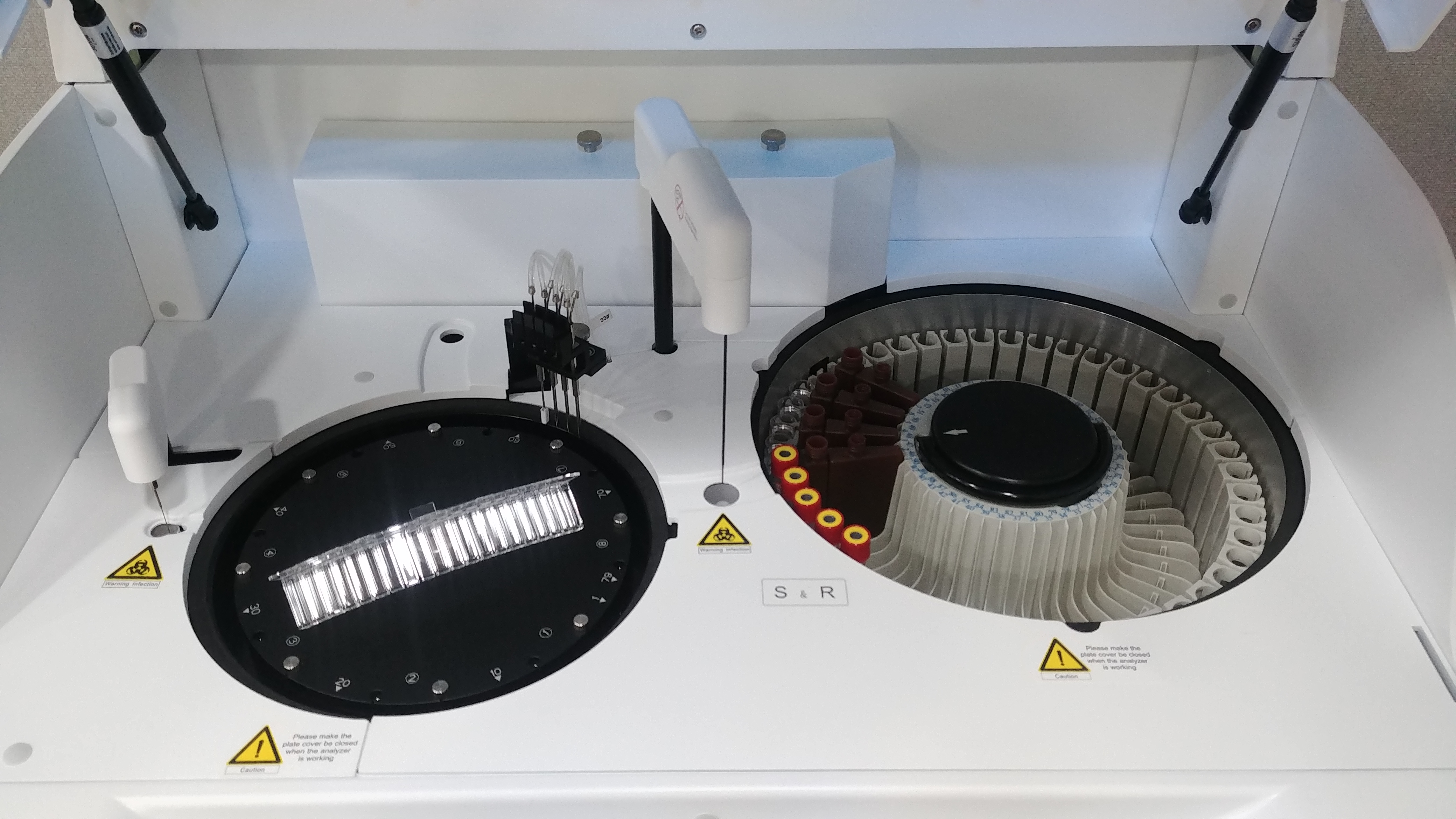 ● Reagent disk has up to 90 reagent positions, temperature 2℃-10℃, with reagent barcode reader